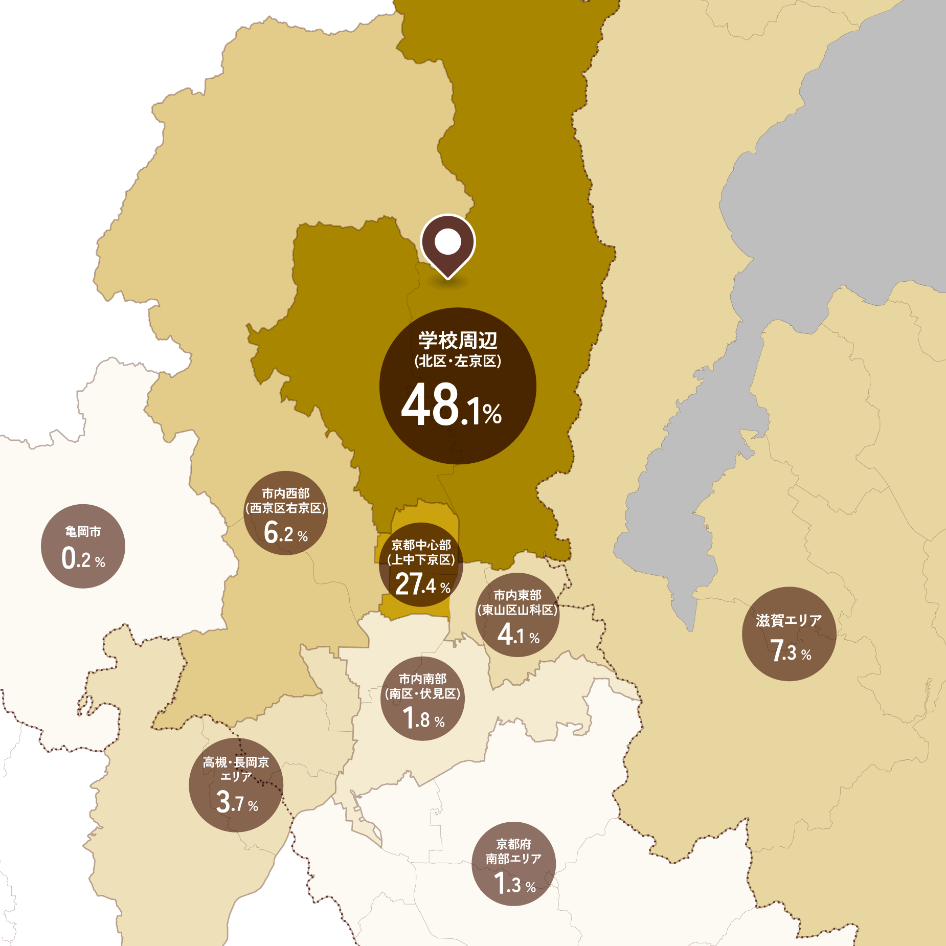 地下鉄烏丸線「松ヶ崎」駅2番出口から徒歩6分の立地で、シンプルなアクセスのため、広域から通学可能です。