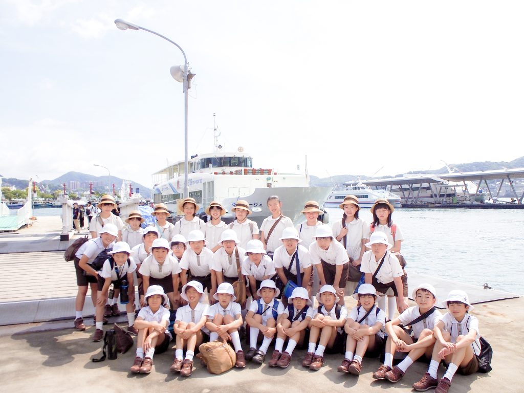 5年生では、年間を通じて平和学習を行います。授業だけではなく、立命館大学の国際平和ミュージアムや広島の平和記念公園に行って、実際の戦争について学習します。