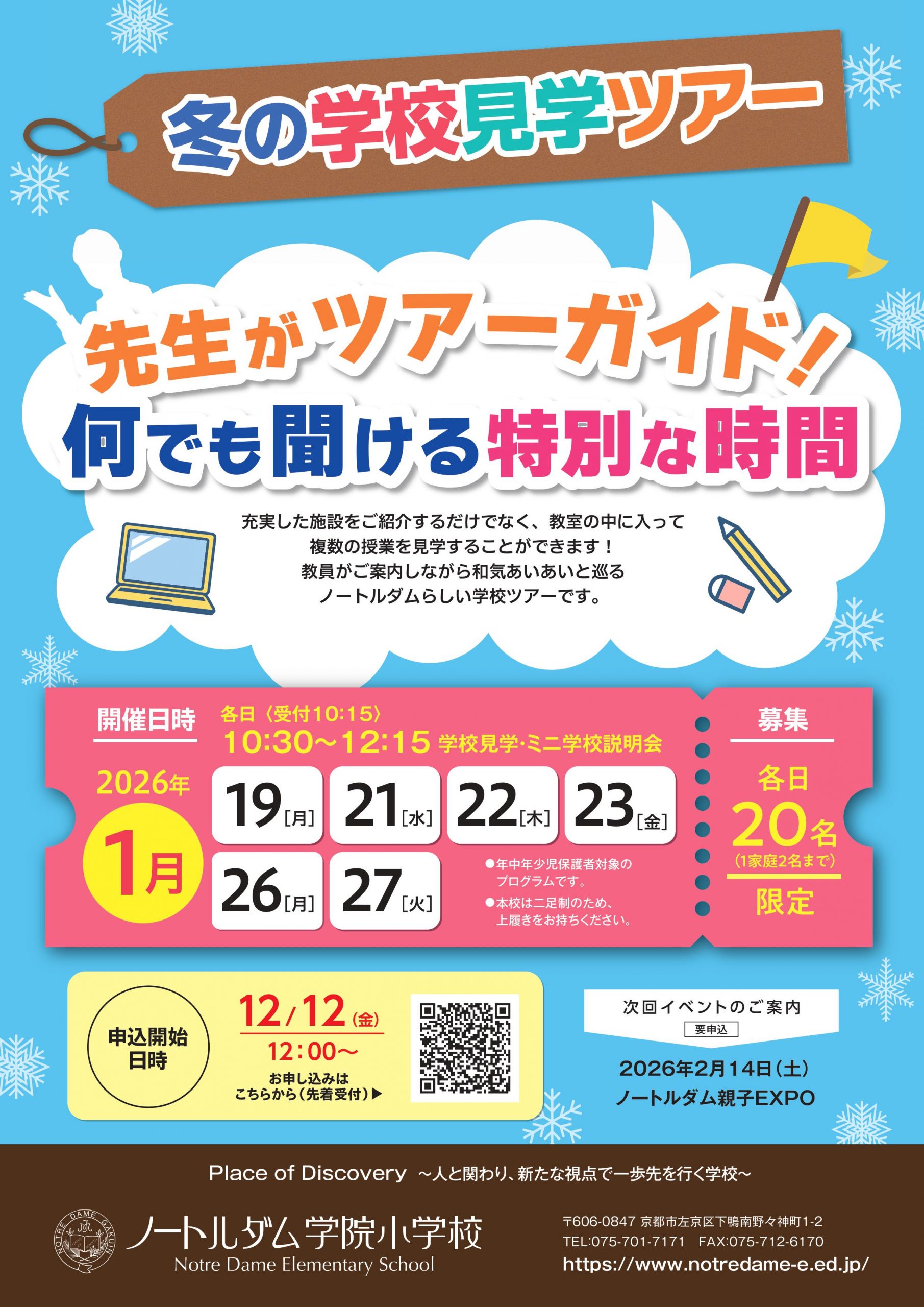 冬の学校見学ツアーのお知らせ