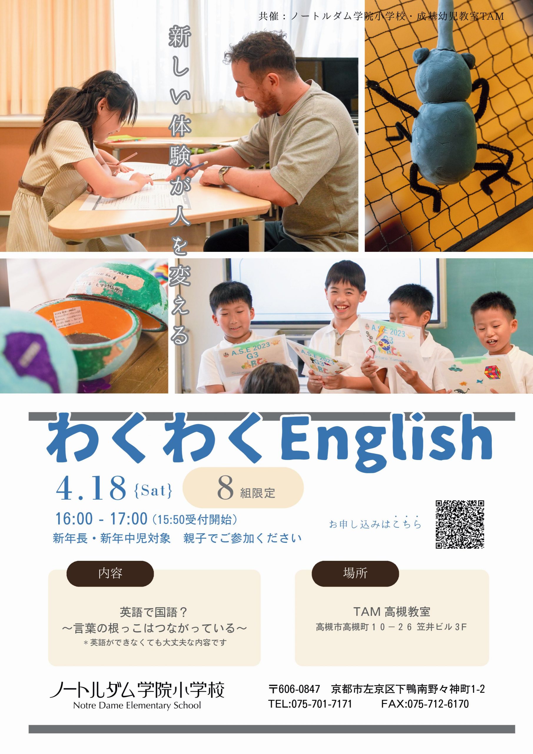 イベント終了体験型わくわくEnglish体験のご案内(高槻開催)