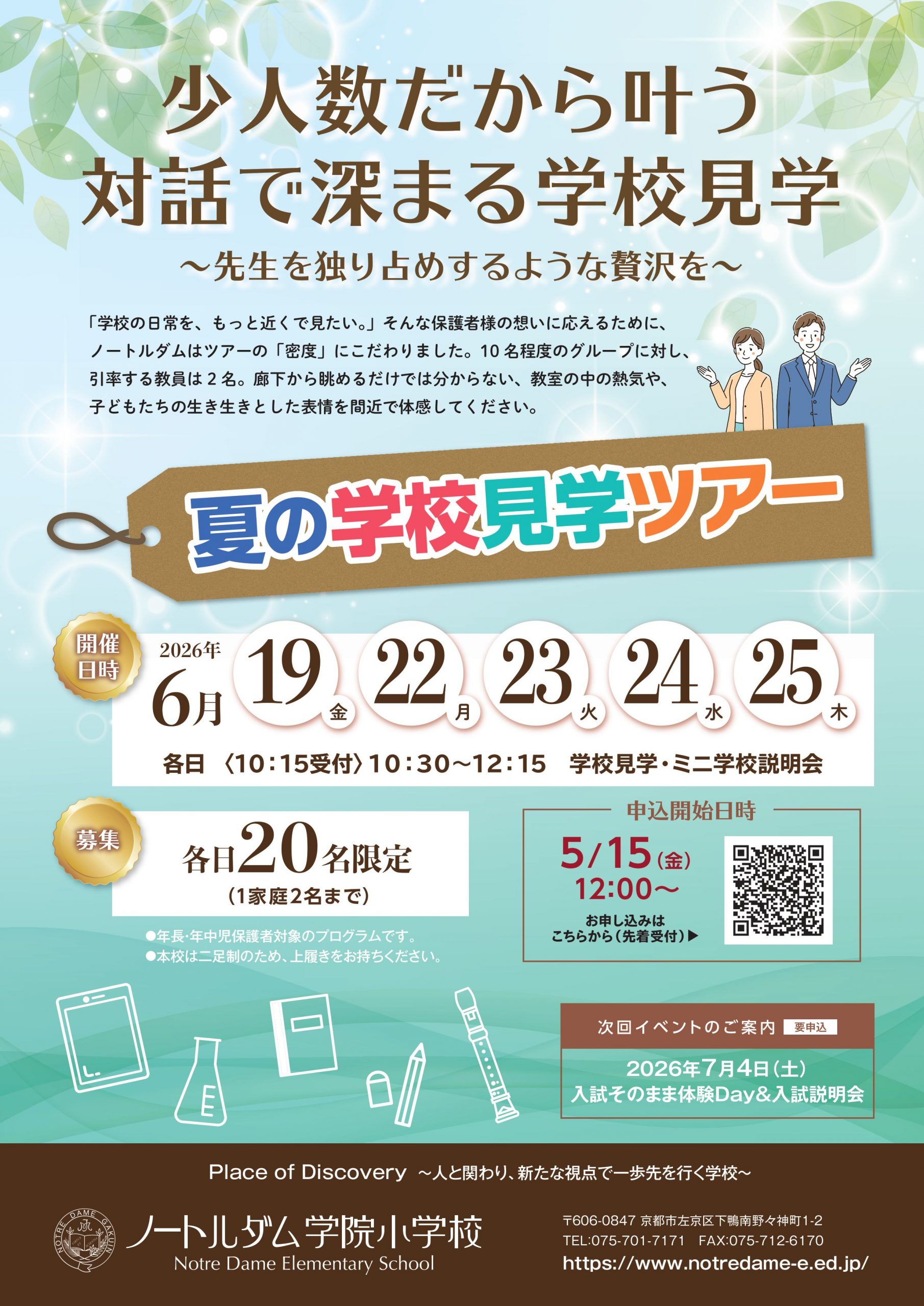 夏の学校見学ツアーのお知らせ