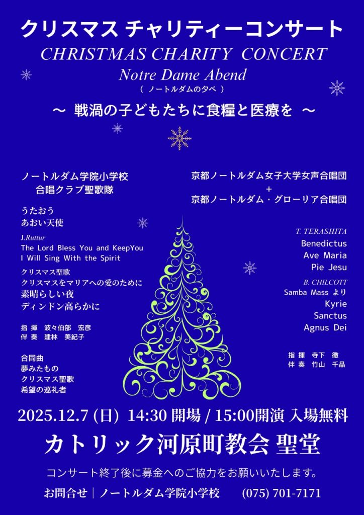 クリスマス チャリティーコンサートのお知らせ ~戦渦の子どもたちに食糧と医療を~