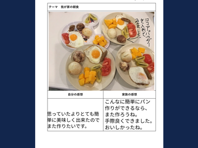 本来ならば、家庭科室でみんなで調理して味わいたいところですが、それぞれの家で挑戦してもらうことになりました。