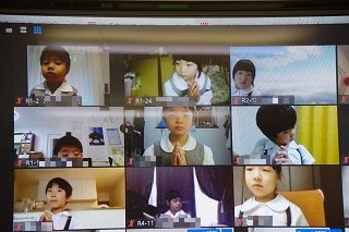 オンラインミーティングアプリ Zoomを活用して朝の会や授業を行ってきた本校では、このZoomを使用して、自宅にいる子ども達とともに祈りをささげるひとときを持ちました。