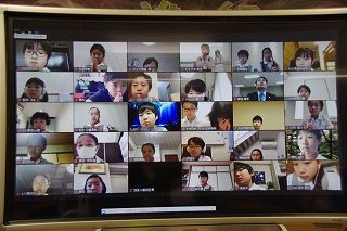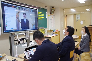 聖堂にいちばん近い教室では、60インチのディスプレイに子ども達の姿が映し出されていました。