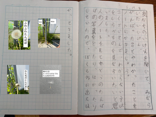 ある子どもは、友だちが撮ったタンポポの写真を見て共感し、自分もタンポポの様子を記録しに外へ出かけました。また、ある子どもは「たんぽぽのちえ」の学習の最終回、たんぽぽの軸がぐーんと伸び、綿毛の種をすべて遠くへ飛ばしきった写真を撮って私に送ってきてくれました。その写真には「たんぽぽが立派に見えた。」という言葉が添えてありました。