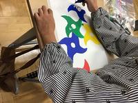 すでに、課題を配信していますが、デザインに使用する形を重ねたり、向きを不ぞろいにしたりしながら、オリジナルの旗を作成します。
