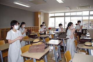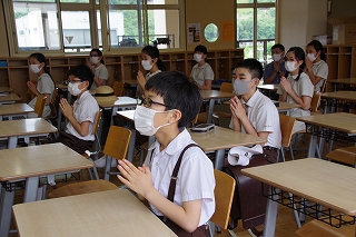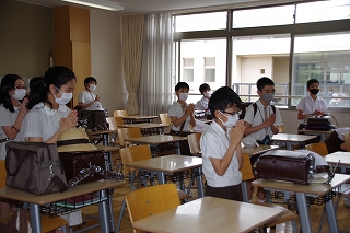 今日は2時間だけの短縮授業でした。無事に登校できたことに感謝して祈り、次の登校を楽しみに解散しました。