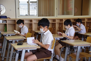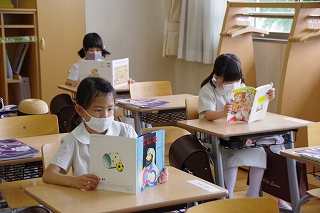 授業が始まるまで、皆静かに読書をしてすごしていました。ノートルダムでは恒例の「朝読書」です。