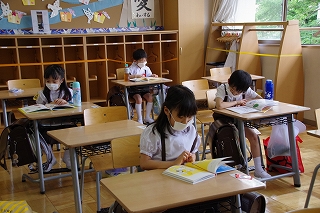 新型コロナウイルスの影響でずっと休校が続いていましたが、6月を迎え、今年度初めての登校日を迎えました。今週は、毎日1学年が半数ずつ、時間をずらして登校しています。