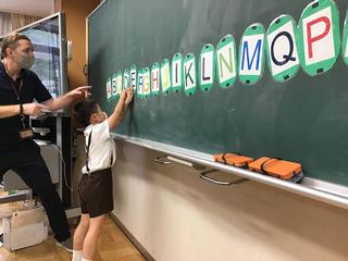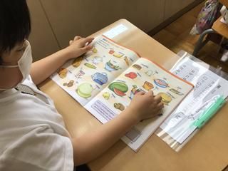 Now the 1st graders are studying about different foods in English class. We all practice the food jingle together which has a different food for every letter of the alphabet. We had a lot of fun telling each other about our favorite foods. We also read a storybook written by a Notre Dame teacher and sang songs in English.