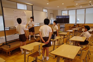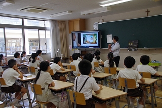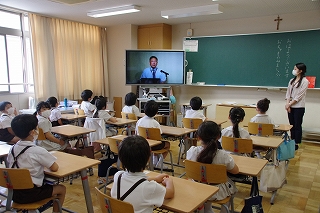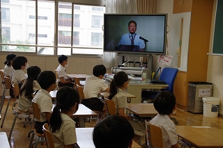 朝はふだんの水曜日と同じように、English Morning Timeから始まりました。ネイティブの英語の先生の作った動画を各クラスで見ました。