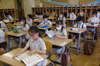 手を洗って教室に入り、静かに朝の読書を行いました。