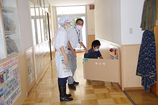 今回は、火災時を想定した避難訓練、および近年増加している大雨による洪水時を想定した避難訓練を行いました。