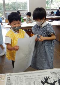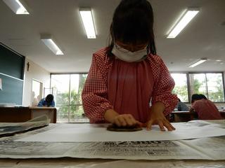 いよいよ、「ぜっこうちょうなきょうりゅうたち」の版を刷る学習です。