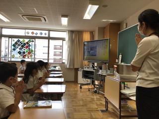 結びに,全校でカトリック教会からいただいている「すべてのいのちを守るためのキリスト者の祈り」を唱えました。