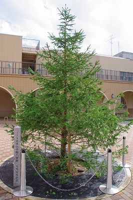 残念ながら,2018年9月の台風21号の強風で,シンボルツリーが倒れてしまいました。ミカエルの会,父母の会,同窓会有志のご寄付により新しいシンボルツリーを植樹することができました。皆様に感謝申し上げます。
