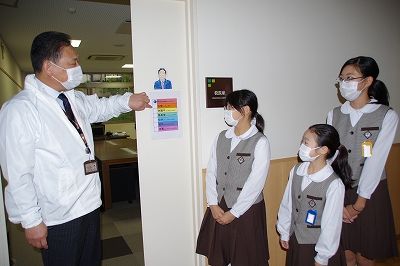 校長室前で「Welcome の表示がある時にはいつでも訪ねてきていいですよ」と言われた子ども達は笑顔で教室に戻っていきました。