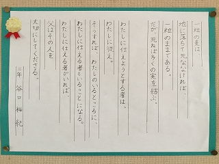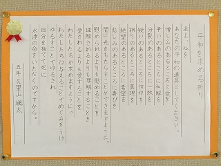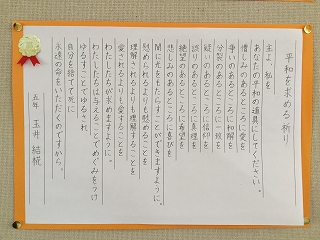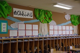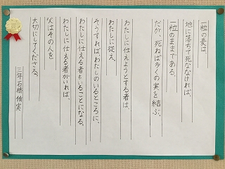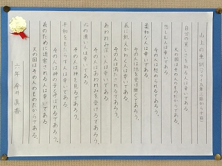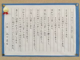 銀賞作品は学年掲示板に、銅賞作品は教室に展示されています。