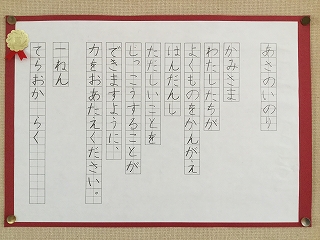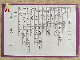 各学年の課題は祈りや聖書のことばなどから選びました。