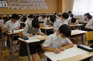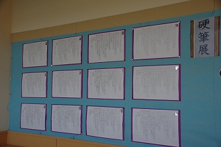 日常的に使う鉛筆で丁寧に文字を書くことを意識づけるため、全校で硬筆大会を行い、作品を展示しています。
