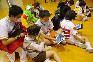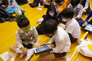 ストーリータイムでお話を読んでくれたのは、パートナーの6年生です。iPadを見せながら、優しく読み聞かせをしてくれました。1年生のパートナーが英語で聞いてわかっているのか心配で、ページをめくる前にこっそり日本語で説明しているほほえましい場面もありました。
