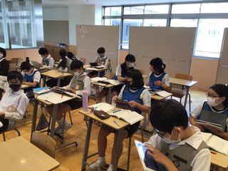 授業の終わりに、教科書を見ながら確認していくと自分たちが導き出したものと同じことが書かれていたので、満足そうな顔をしていました。