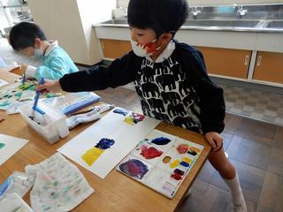 子ども達は「えっ、絵の具だけで?」