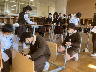 大掃除では,自分の机,いすから始め,教室のロッカー,床など,クラスみんなのものへと,拭き掃除に励みました。12月の月の言葉「献身」の通りに,今年一年の感謝をこめて,一生懸命にきれいにしようと努めました。