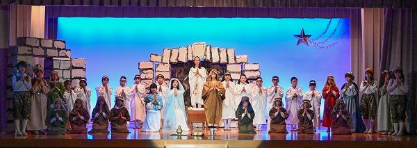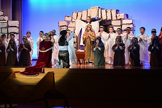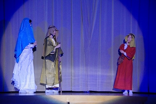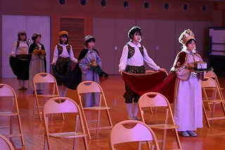 「タブロー」はいちばん初めのクリスマスの日に起こったこと、つまりイエス・キリストの誕生を祝う聖劇です。セリフはなく、ナレーターが代わりにセリフを言います。高学年の子ども達がタブローを演じました。今回は事前に収録したものを校内テレビで放送しました。
