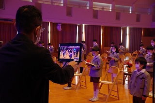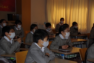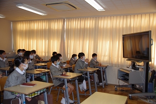 例年は講堂に集まって行っていましたが、今年度は新型コロナウイルス感染予防の観点から、オンラインミーティングアプリ Zoomと校内テレビ放送を活用してそれぞれのクラスから参加しました。