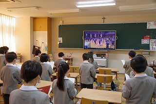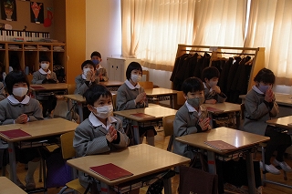 24クラスと講堂に分かれての”集い”でしたが、心をひとつにして祈りを捧げました。