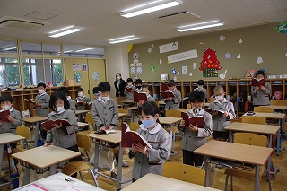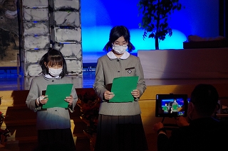 校長先生のお話の後、代表児童が「クリスマスへの招き」を述べました。