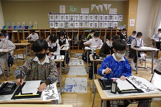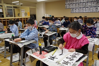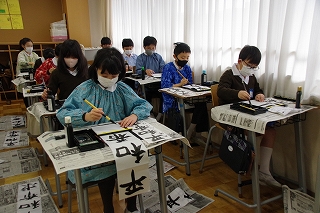 1月7日、後期後半の始業日に書き初め会を行いました。