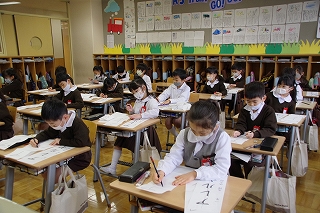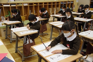 本校ではカトリック校にふさわしい、聖書や祈りの言葉を書き初めの課題に選んでいます。