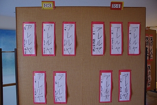 子ども達も筆づかいや字の形など良い所を見つけながら、作品を鑑賞しています。