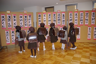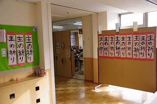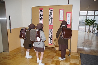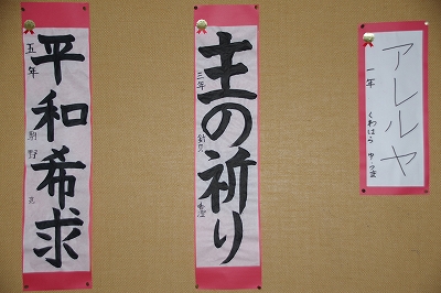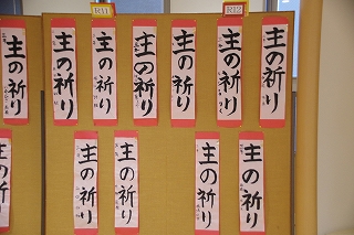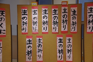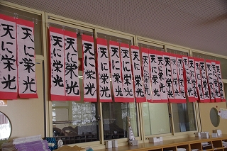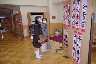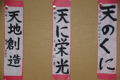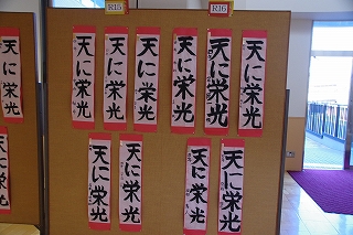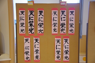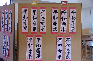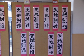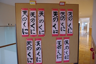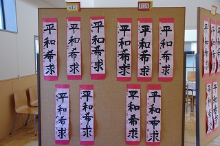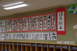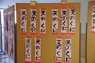 1月7日に行った書き初め会の全作品を「書き初め展」として校内に展示しています。