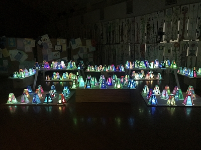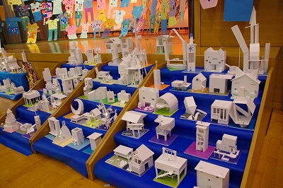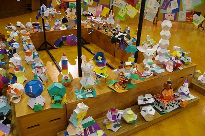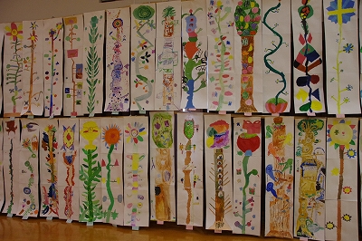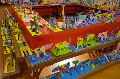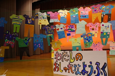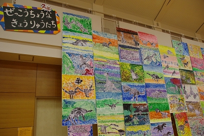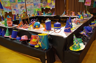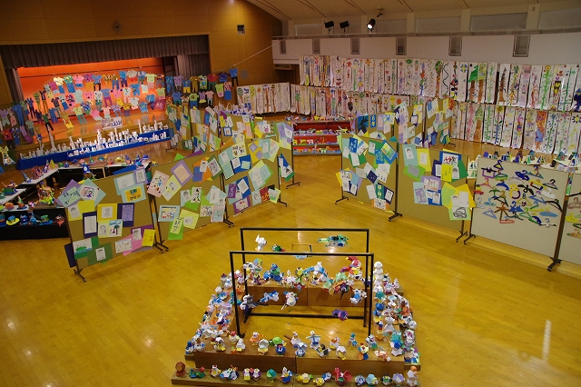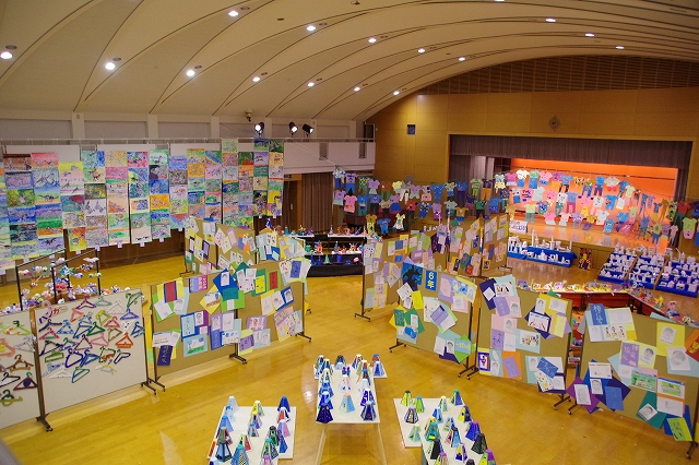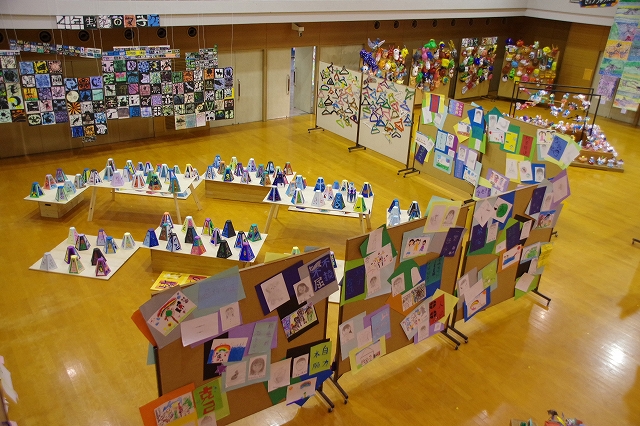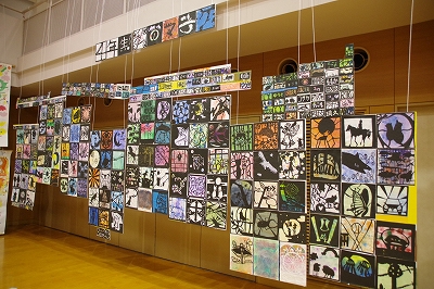 全校児童の作品が美しく飾られ、講堂がすてきな美術館になりました。