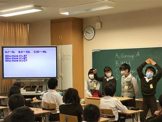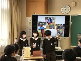 The 5th graders also gave a presentation to the 4th graders. They have studied about sustainable development goals “SDGs” in social studies, science and home economoics. In English lessons they focused on the 5 R’s (Recycle, Reuse, Reduce, Refuse, Repair) and discussed what they could do in groups. They thought of a project that they could actually do in their daily life and introduced their projects to the 4th graders.