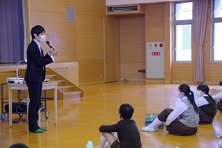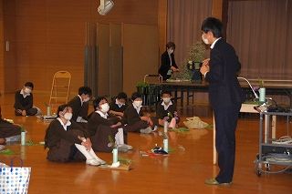 今年も本校卒業生である笹岡隆甫先生が、6年生にいけばな体験の特別授業をしてくださいました。2クラスずつ、講堂で授業を受けました。