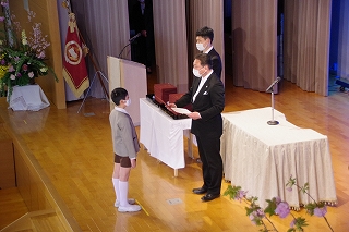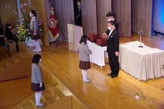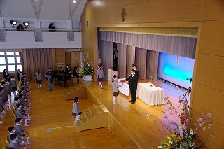 一人ずつ名前を呼ばれた後、6年生が登壇し、校長先生から卒業証書を手渡されました。