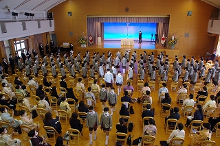 その後、卒業生は保護者席に向かって起立し、「旅立ちの日に」を歌いました。マスクをしたままではありましたが、感謝の気持ちを込めて歌いました。
