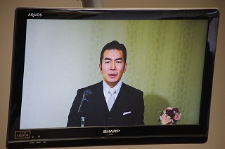 卒業式の後に行う予定だった卒業昼食会は中止となり、同窓会会長からの挨拶はテレビ放送で教室へ向けて行われました。