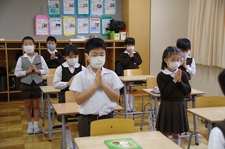 共同祈願は3~5年生の代表児童が行い、教室の子ども達も心をあわせて祈りました。