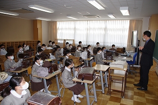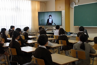 修了式は例年講堂に集まって行っていますが、今回はコロナウイルス感染予防の観点から、テレビ放送を通して行いました。