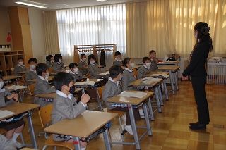 校長先生のお話を各教室で姿勢を正して聞き、一年をふり返りました。