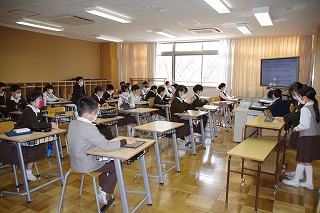 テレビを通しての修了式でしたが、子ども達は「起立、礼」も良い姿勢で心を込めてしていました。