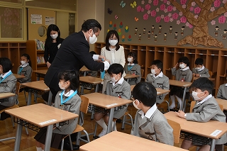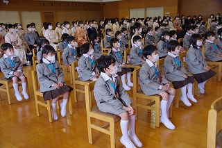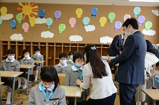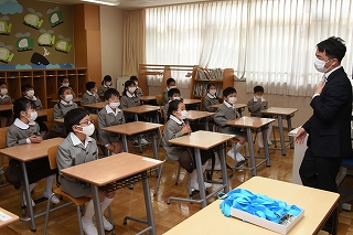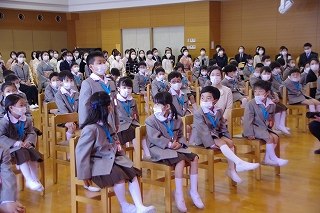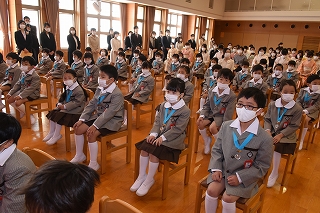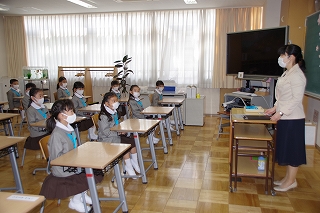 保護者の皆様は講堂に向かっていただき、子ども達は教室で入学式までのひとときをすごしました。本を読んだり、先生のお話を聞いたりして静かに待ちます。