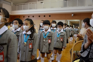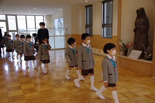 その後、子ども達は姿勢を正して校長先生の話を聞きました。ノートルダムとはマリア様のことだというお話を聞きました。