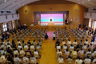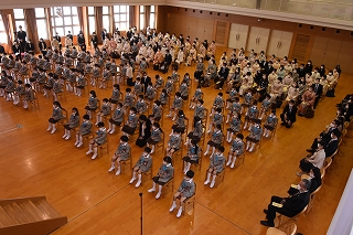4月8日、第68回入学式を挙行しました。新型コロナウイルス感染拡大予防の観点から、列席する保護者の方をお一人に限定し、全員マスク着用で、座席間の距離を取り、また窓や扉を開け放して細心の注意を払いました。